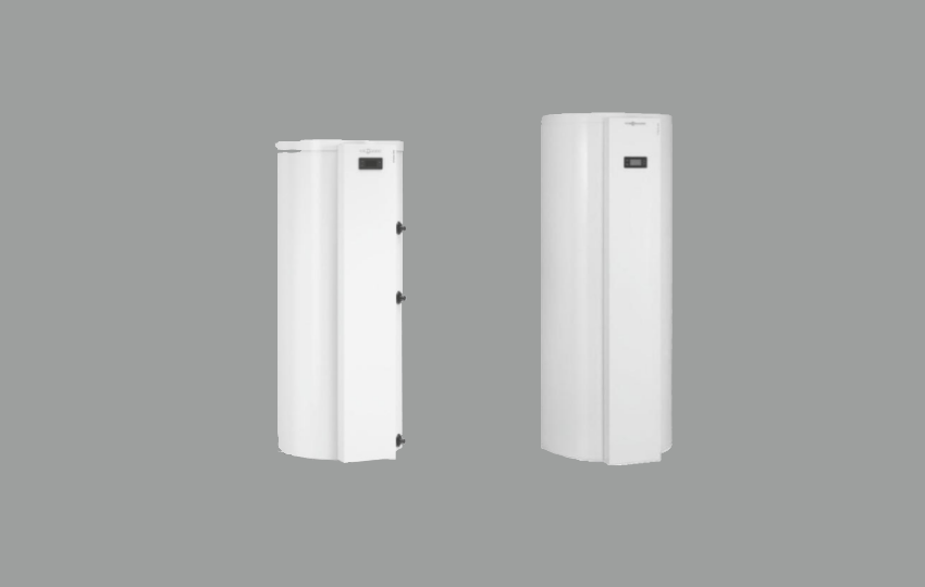 Vitocal 060-A è una pompa di calore compatta per la produzione di acqua calda sanitaria, integrata in un bollitore verticale disponibile in due capacità: circa 180 litri (versione T0E) oppure 250 litri (versioni T0E e T0S).